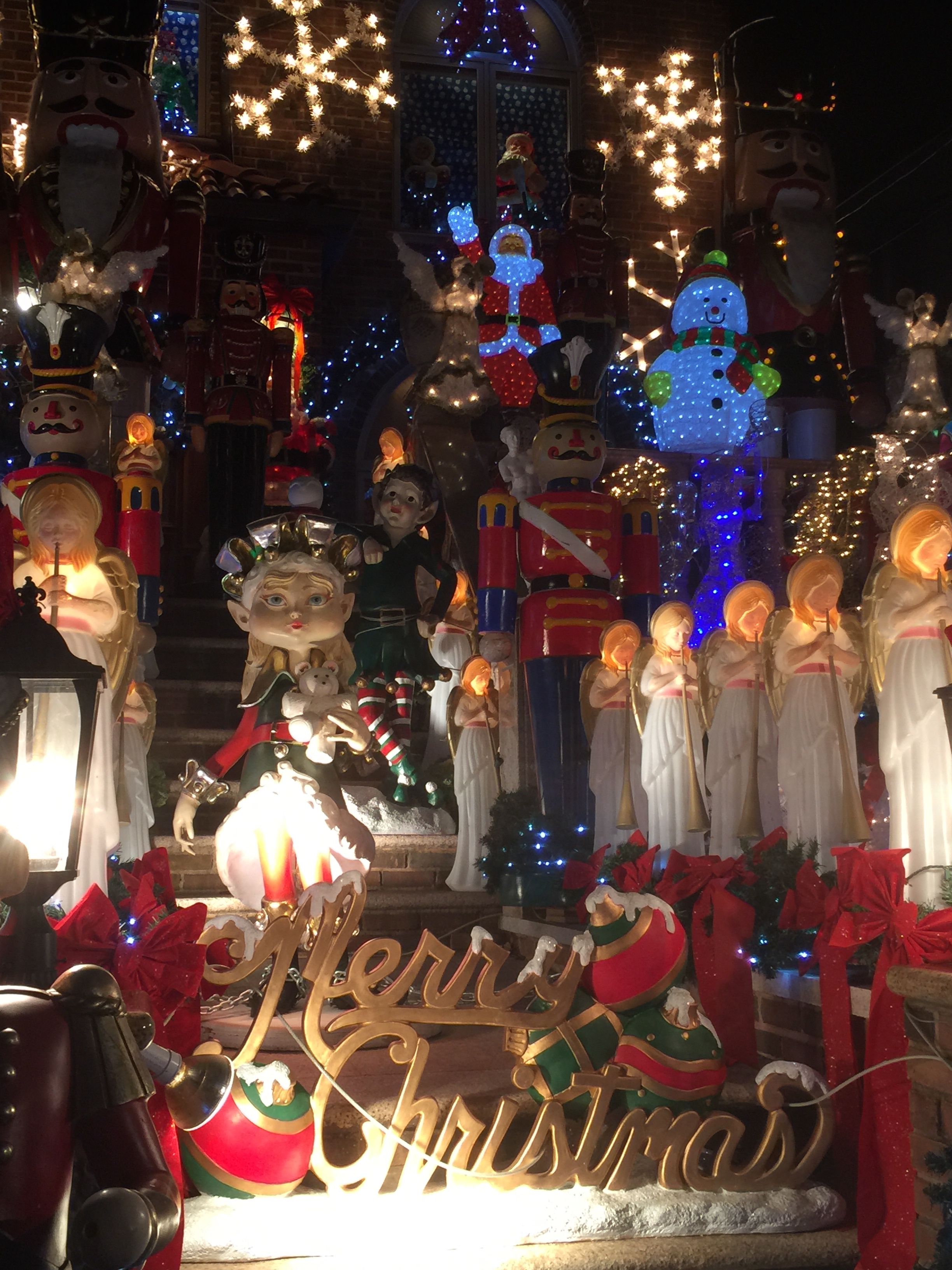 Last night I went to Brooklyn with several women from the Manhattan Women’s Club (remember, not as fancy/snobby as it sounds, I promise). We went to look at Christmas lights in Dyker Heights. Don’t worry, I’d never heard of it either, but wow! Check it out here.