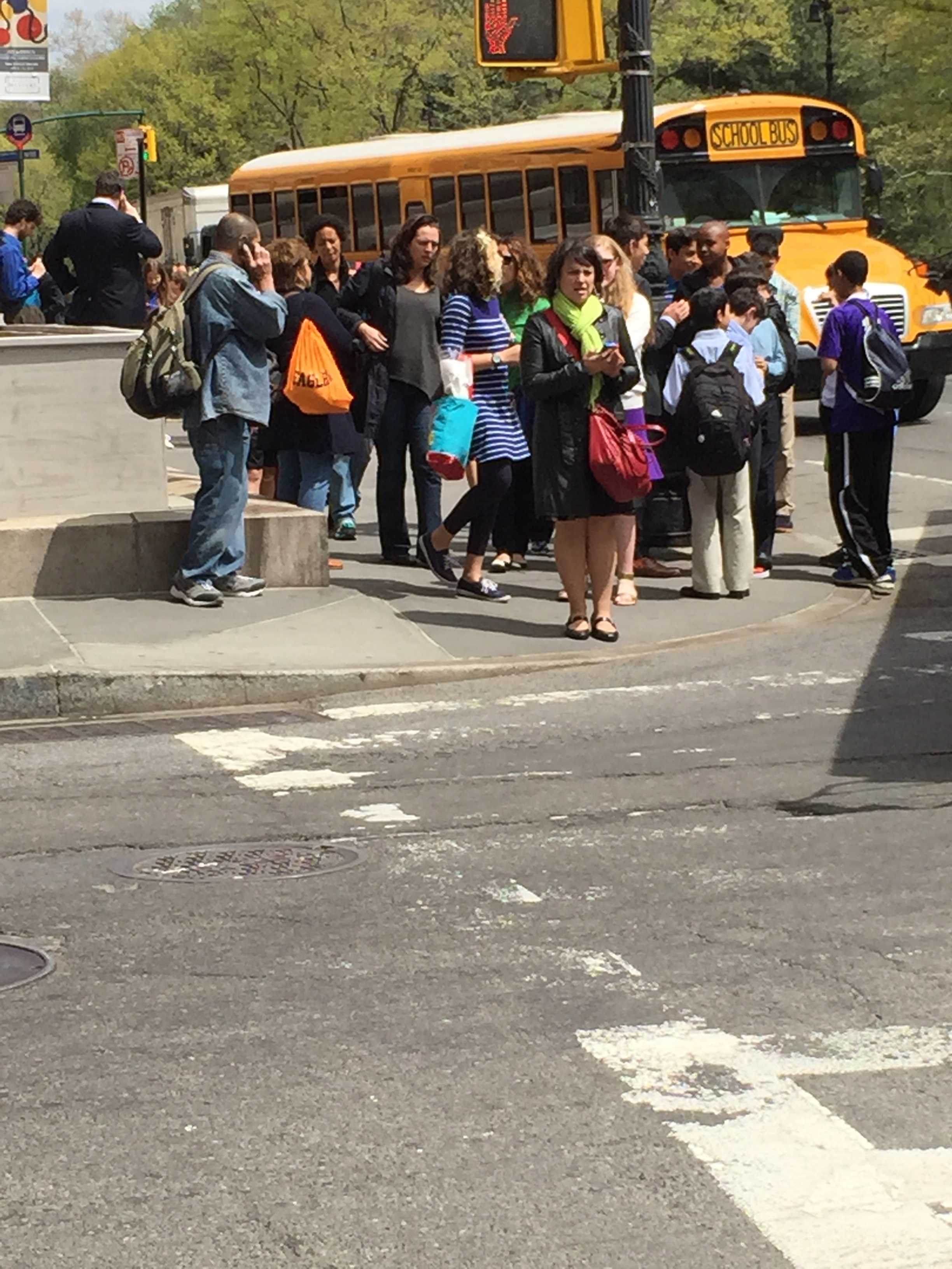 There were school busses parked and double parked all up and down Central Park West (the street behind my apartment building that borders the west side of Central Park).