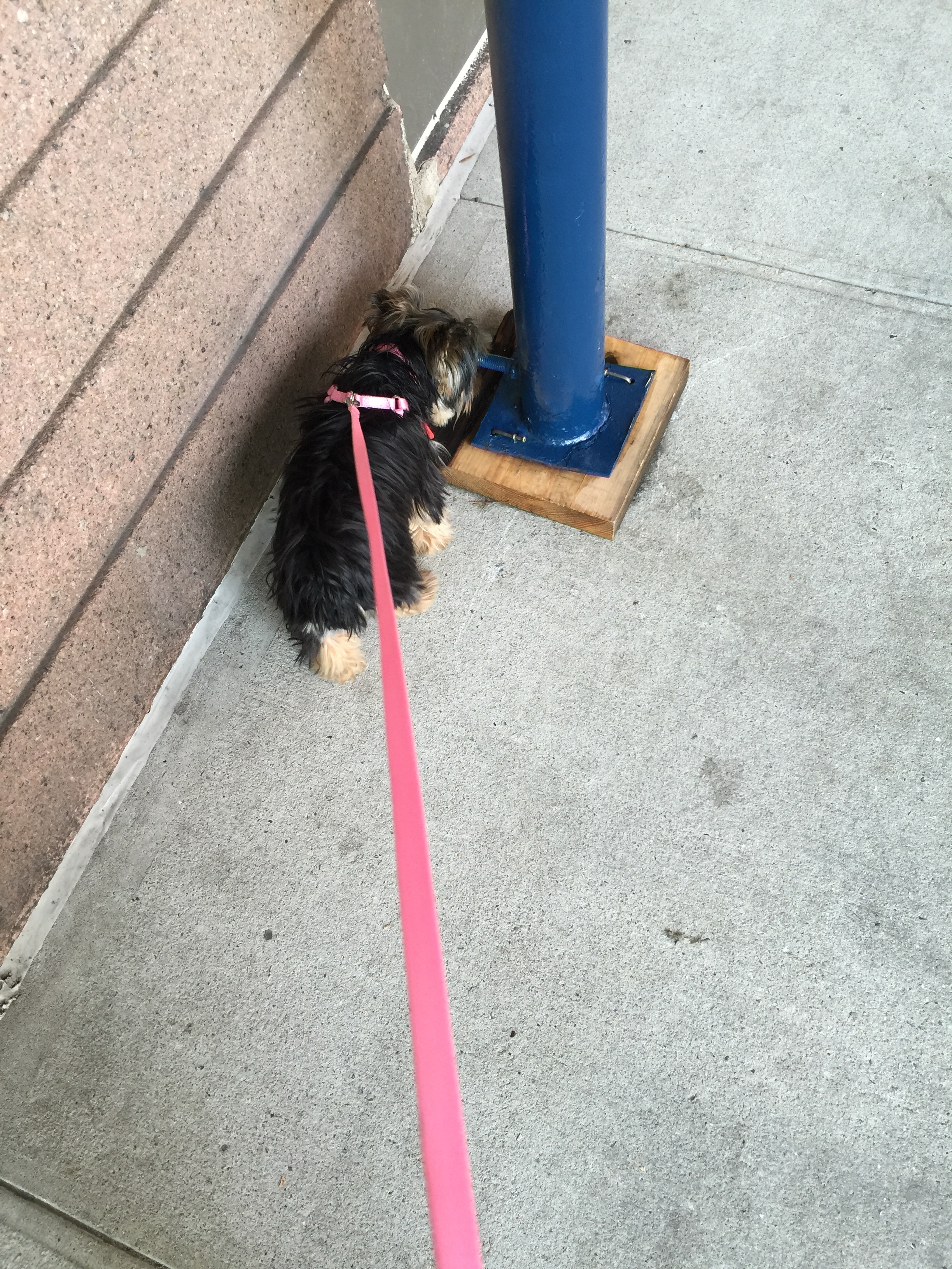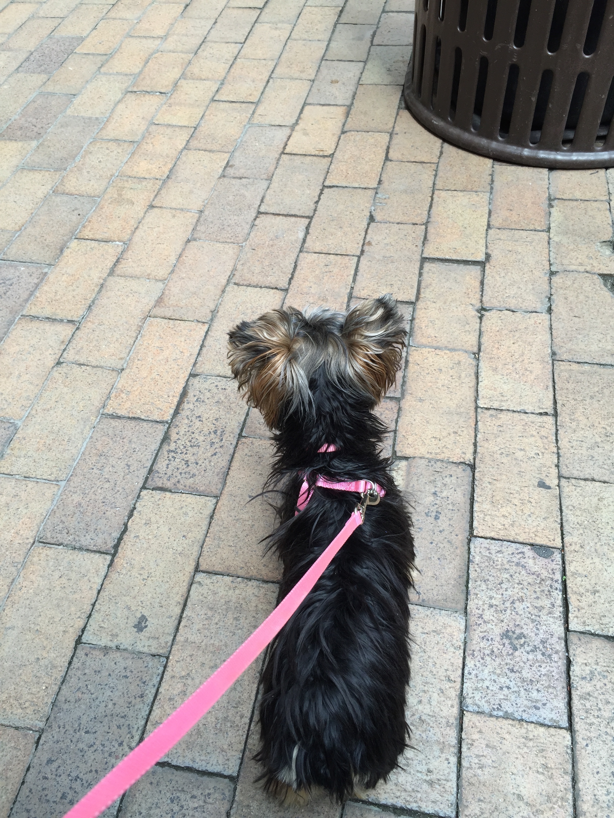 She still stops and sniffs at every single tree and pole.